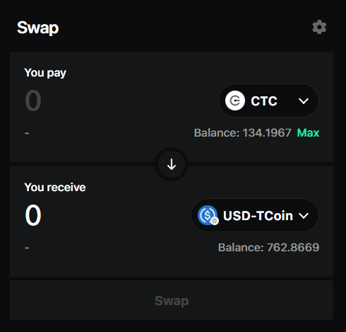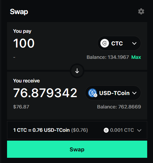 Before beginning this part, make sure that you have CTC to pay for the swap gas fee. \