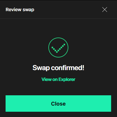 Once the transaction is confirmed on the blockchain, you will see : "Swap confirmed"<br>