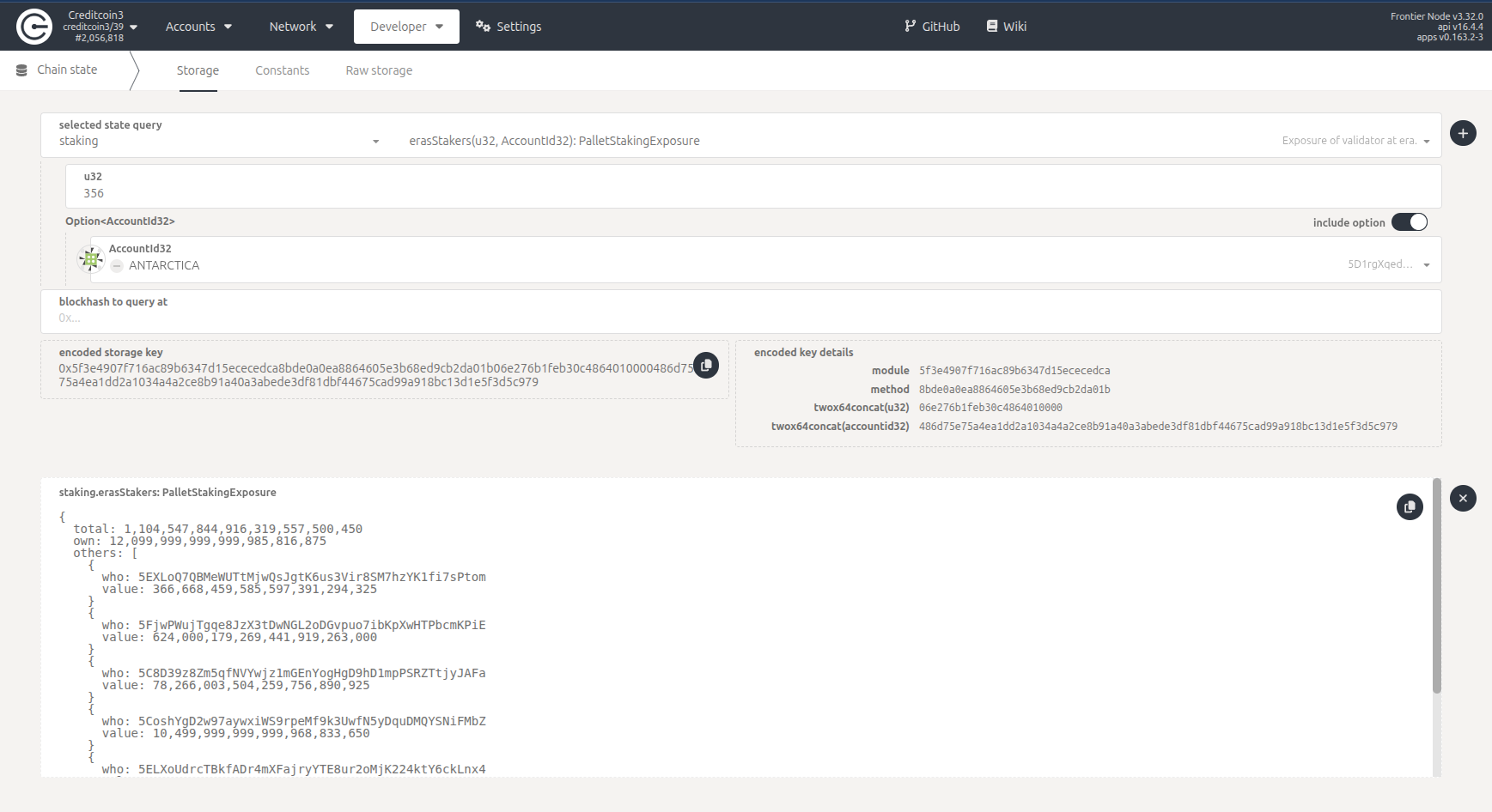 \&#xNAN;*Note: for the eras after the runtime upgrade (Era 384), use staking > erasStakersPaged to get the staking information.*&#x20;