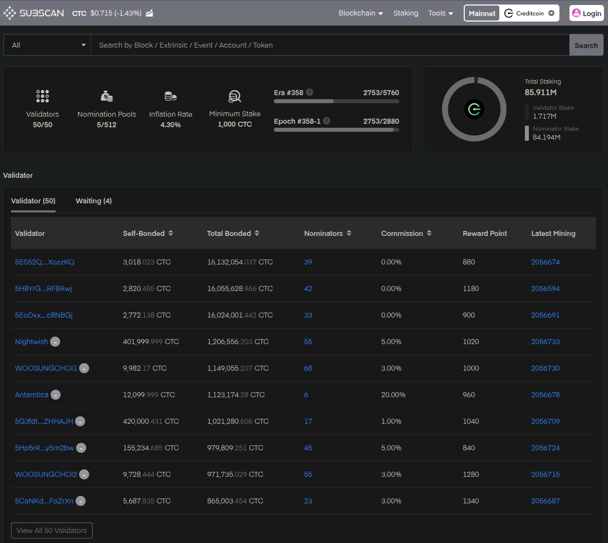 * Creditcoin3 Subscan: <https://creditcoin.subscan.io/validator>\